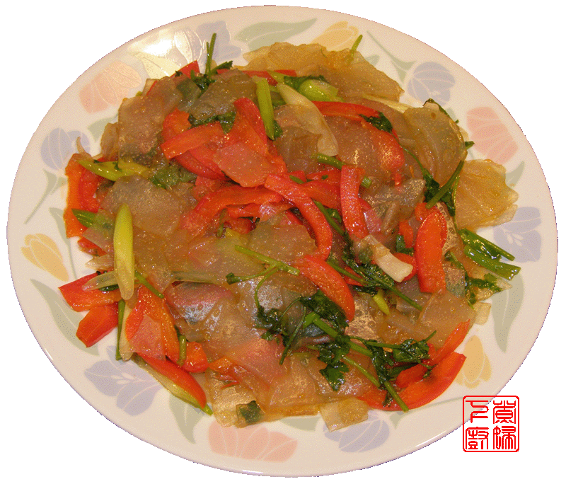材料: 凉粉,香菜,葱姜蒜,红柿子椒,调味料。