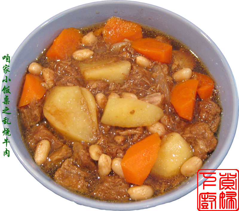 材料: 牛肉,土豆,胡萝卜,洋葱,花生,调味料。