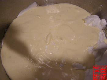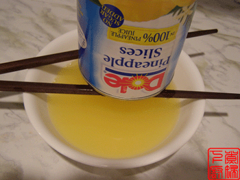 做法: 1、打开菠罗罐头,用滤网把菠罗和汁分开(汁只留一点点)。 2、用两个深型容器,把蛋白和蛋黄分开放,用打蛋器把蛋黄打到发白,分三次把白糖的一半加进去,直到白糖融化在蛋黄液里面。 3、面粉和泡打粉及盐混合好,然后用筛子筛两遍。把混合好的面粉一点一点倒入打好的蛋黄液中,同 4、蛋白里面加一勺白醋,用打蛋器把蛋白打发。先用高速把蛋白打的都是气泡,把剩余的白糖加进去,然后再换成中速打到蛋白满是小气泡,拿起搅拌器时蛋白附在上面象个倒置小山就可以了。 5、把打好的蛋白的 1/3 舀到蛋黄液盆里,混合均匀 6、烤箱预热 350 华氏度,预热的时候把黄油放入实底烤盘放入烤箱,黄油融化之后再把烤盘拿出来,把红糖均匀的铺在烤盘上(红糖一定要匀,这个决 据说菠萝碎比菠萝圈好吃,所以也有人 根本就不用菠萝圈,而只用菠萝碎。