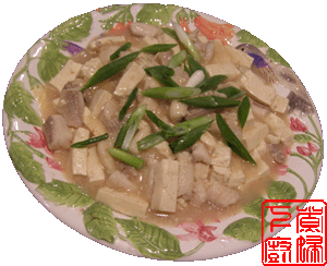 做法: 1、鱼肉片切条,豆腐切条,姜切片,蒜切片,葱切葱段,淀粉加水和成水淀粉。 2、炒锅倒油烧到温热,下鱼条炒至断生成型,然后盛出待用。 3、炒锅重新倒油烧热,姜片爆香,捡出姜片丢掉,然后加豆腐条稍加翻炒,然后加水或者鸡汤炖一下,同时加入炒过的鱼肉条一起炖,用盐、醋调味,同时加蒜片入锅,出锅前用水淀粉勾芡。 如果喜欢吃辣,可以把菜里面的汤汁熬的干一些,然后用干红辣椒烧一点辣椒油浇在上面。