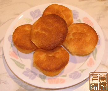 材料: 面粉 2 杯,白糖 3/4 杯,泡打粉(Baking Powder)1 小勺,鸡蛋 4-5 个,黄油(butter)4oz,麦琪琳(margarine)2oz,芝士(cheese)碎适量。