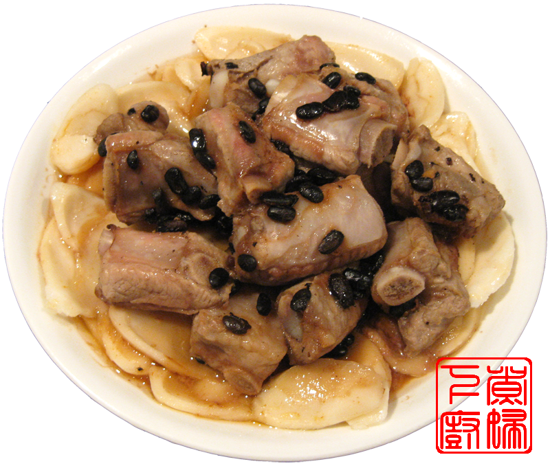 材料: 排骨,豆豉,年糕片,葱姜,调味料。