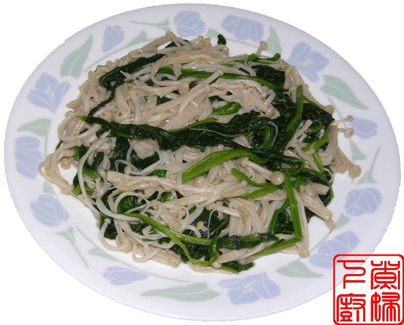 3、金针菇和菠菜拌在一起,加调味料拌匀即可。