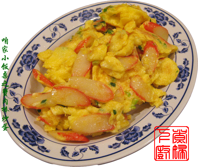 那些蟹肉棒,好象最常见的吃法就是拌沙拉。可惜我不怎么喜欢那些西式沙拉,没法子,中国胃只能吃中国菜,所以对我来说,这东西还是炒着吃舒服。
