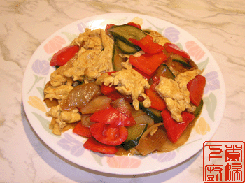 做法: 1、柿子椒切块,洋葱切块,黄瓜切片。 2、鸡蛋打散,加少许盐调味。 3、炒锅烧热油,把鸡蛋炒成块状,盛出待用。 4、炒锅重新倒油烧热,把洋葱炒软,加一点点酱油让洋葱挂色,然后加入柿子椒翻炒,再加入鸡蛋块和黄瓜片翻炒,加盐和醋调味,待黄瓜片稍微发软即可出锅装盘。