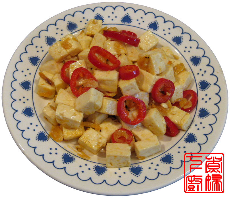 材料: 豆腐,虾皮,红辣椒,调味料。