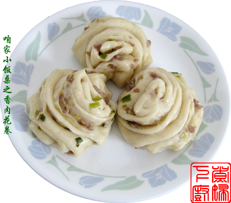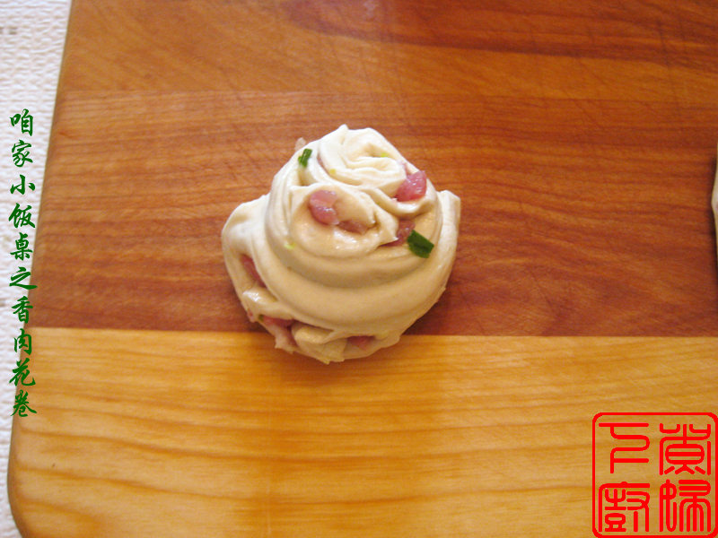 材料: 面粉,酵母,糖,腌肉,小葱,调味料。