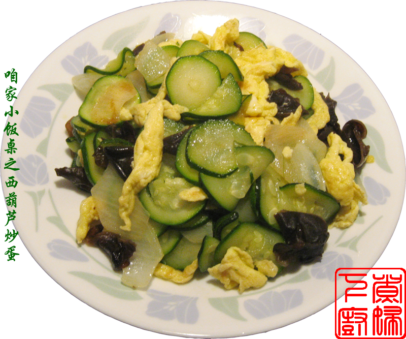 材料: 西葫芦,木耳,洋葱,鸡蛋,调味料。