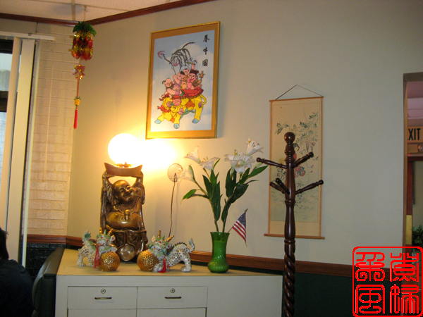 店子的装修比较简单,不过还能看到中国的味道。据说店主夫妇是台湾人,有一对双胞胎的女儿。 我们去的时候,只看到一个女儿在那里帮忙,老板娘跑进跑出的上菜,老板自然是在厨房里面炒菜了。我们这里很多规模不大的中餐馆都是这么个夫妻档组合。