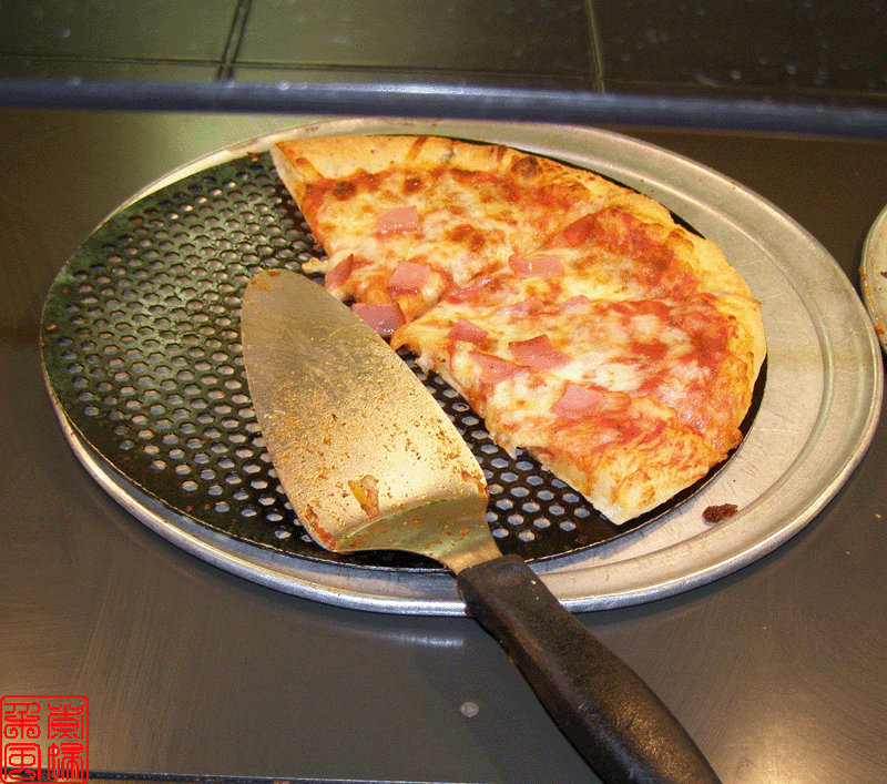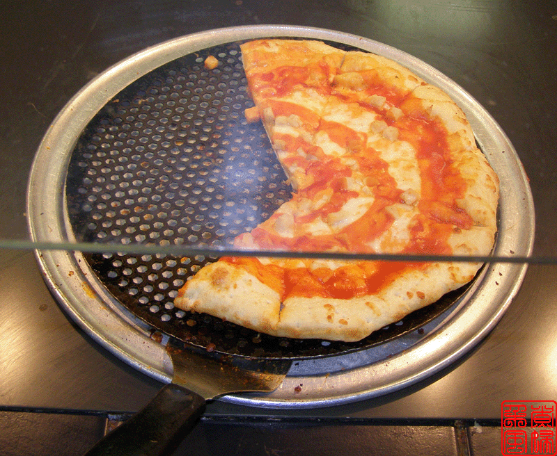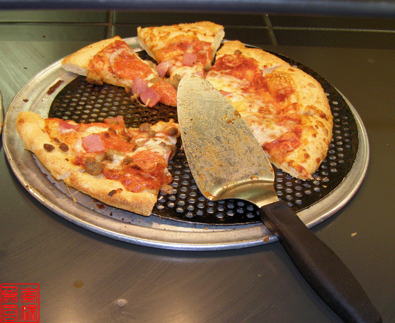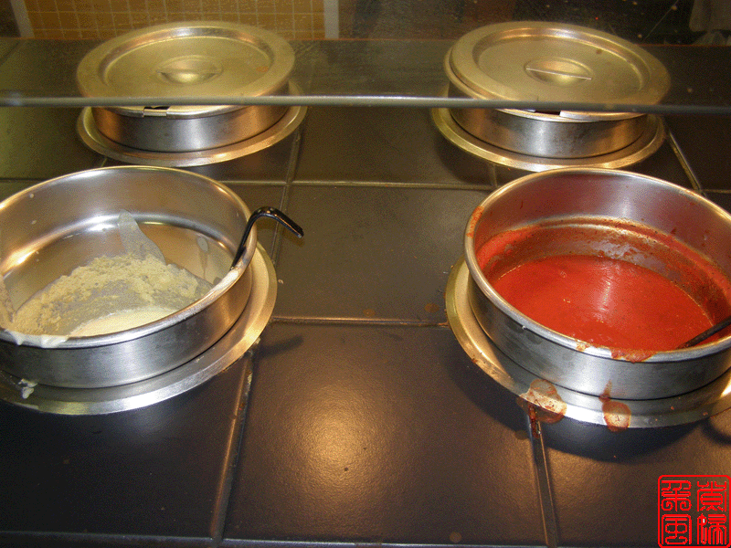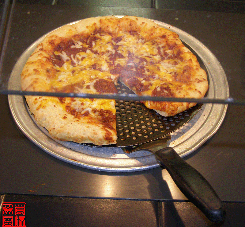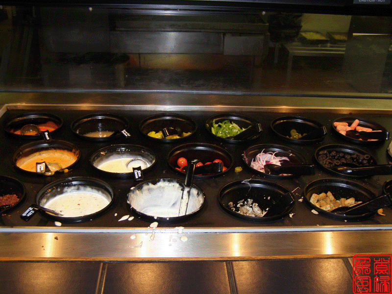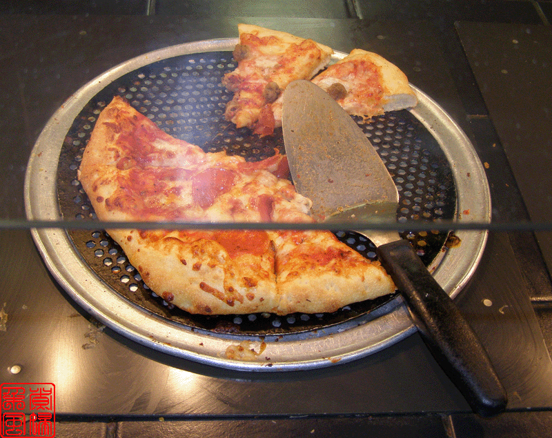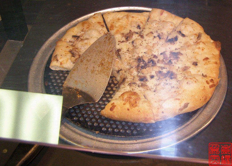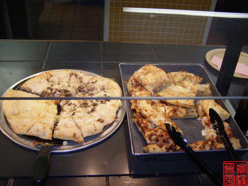 好像据说披萨是意大利人的发明,所以披萨店子里面总是有些带意大利特色的食品。这家店子的是 pasta,就是意大利面。旁边那几大罐子就是浇意面的汁了。 下面这些图就是他们的披萨了,可惜拍照的时候没有我最喜欢的菠菜披萨的。