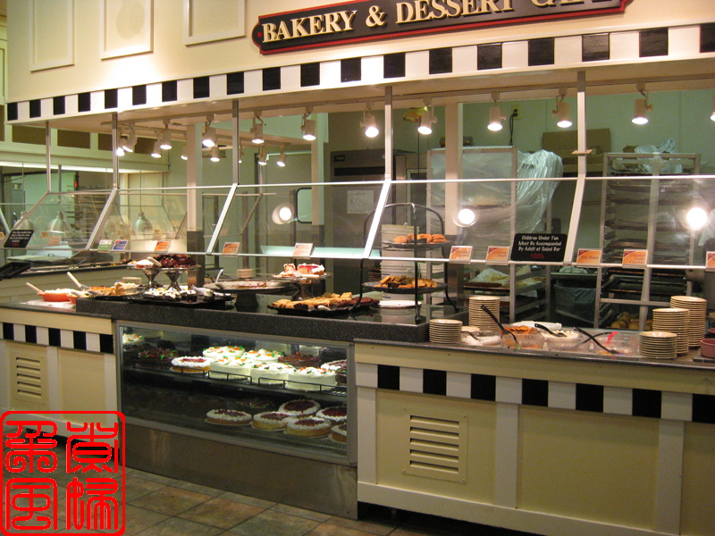 食物一共分三个区,沙拉/水果、主食和甜点。美国的自助餐馆,甜点明显多过中餐馆。
