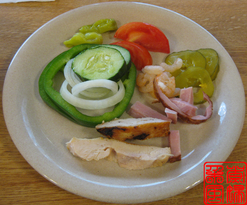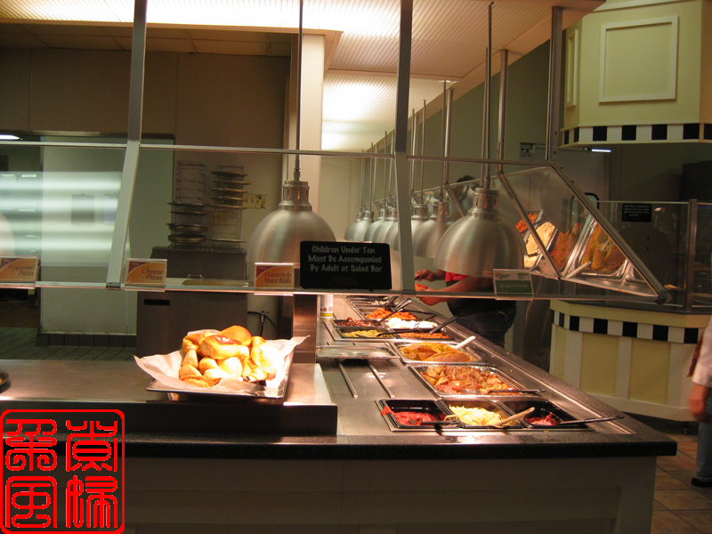 这是一家美国人的自助餐馆,我们去的频率不高, 一年就那么两、三次而已。不过,很多美国人都喜欢他们的那些自助餐馆,每次我们去,餐馆里面都很多人在用餐。我认识的一个美国人 告诉我说他每个月都要去至少一次的。