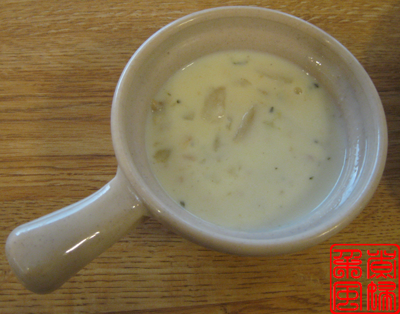他们的汤品种不多,不过,味道还可以。我这次拿的是奶油、土豆和不知道什么东西煮出来的。我们一边吃还一边探讨老外对土豆的一往情深来着,同时发觉他们什么形状的土豆都吃,就是不吃土豆丝。