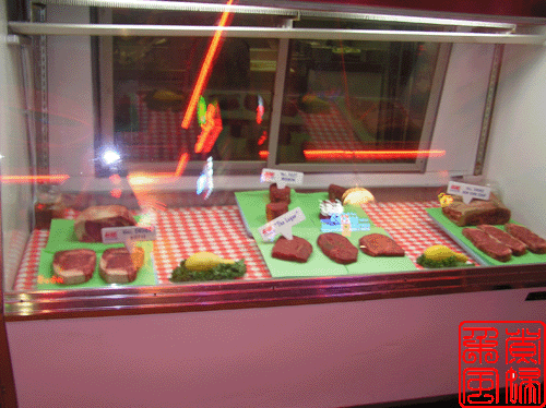 这家店子还有一个小柜台,里面摆着肉,还标着价钱,旁边还有一个人在那里烤肉,因为时间的关系,我没有细看,不过,猜想是有人如果想点那些肉的话,就可以要人给烤到喜欢的生熟程度。