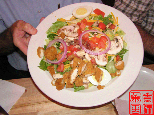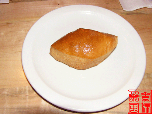 先上来的是常规的餐包,只是他们的餐包是菱形的, 一同上来的还有一小碗的奶油奶酪,那个是抹面包用的。然后端上来的,是我们点菜部分的沙拉。