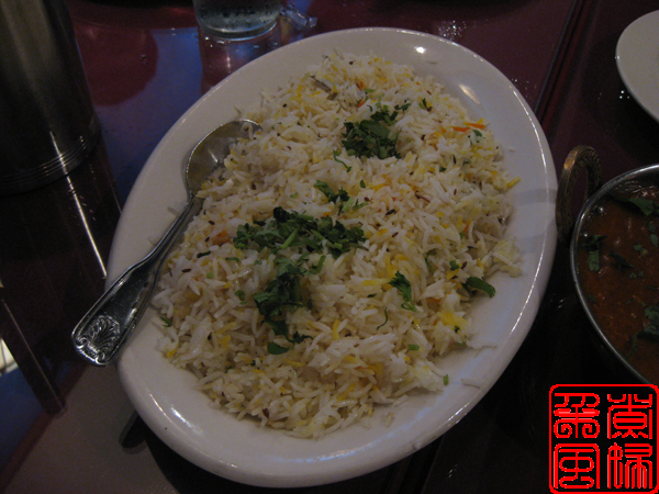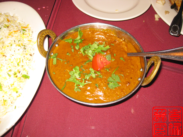 这道咖喱羊肉是单独叫的,味道很好,里面加了腰果酱。好象印度人很喜欢吃腰果,加了腰果的菜占了多数。