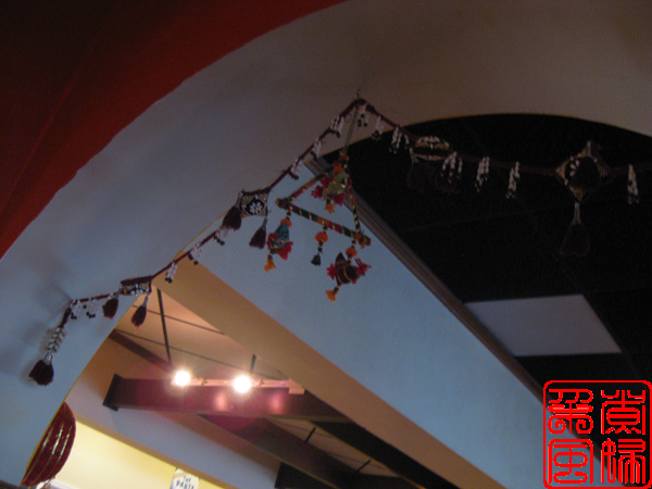 这个餐馆还有两个用餐区,通向第二个用餐区的是一个拱门,上面还挂了些珠子做的东西。这家餐馆里那些珠子做的东西到处都是。 不知道是印度人都爱还是店老板的偏爱。
